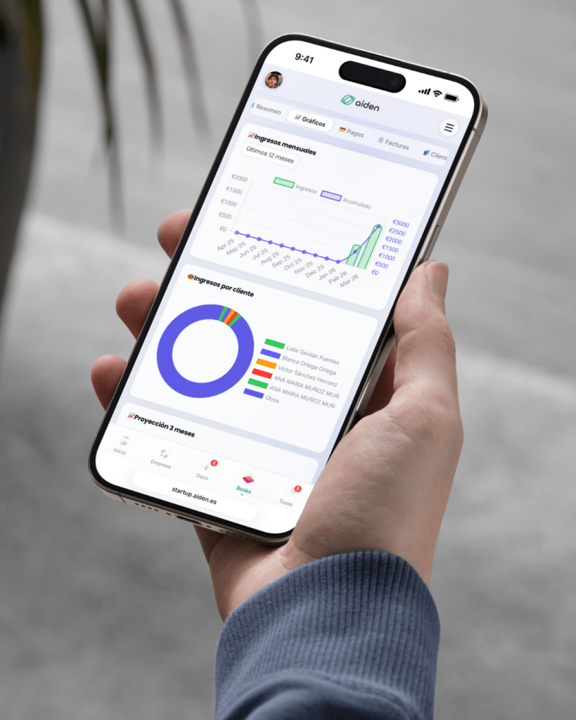Aiden Billing es nuestro software contable diseñado para facilitar la gestión financiera de tu empresa. Te permite subir y organizar facturas registrar gastos generar enlaces de pago para tus clientes y gestionar toda tu cartera de clientes desde un solo lugar. Todo de manera simple y eficiente, ayudándote a mantener tus finanzas al día y enfocarte en hacer crecer tu negocio.