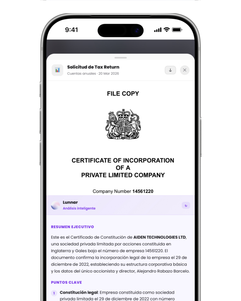 Los documentos de constitución incluidos en nuestro servicio son esenciales para formalizar la creación de tu empresa en el Reino Unido. Recibirás el certificado de constitución y los estatutos sociales, documentos que confirman la existencia legal de tu empresa y detallan su estructura y funcionamiento. Estos documentos son fundamentales para realizar cualquier trámite oficial y gestionar tu negocio de manera correcta y legal.