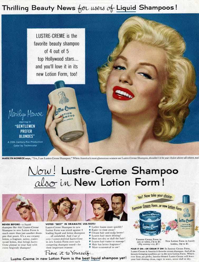 El rostro de Marilyn Monroe en un anuncio de champú de 1953. Wikimedia Commons