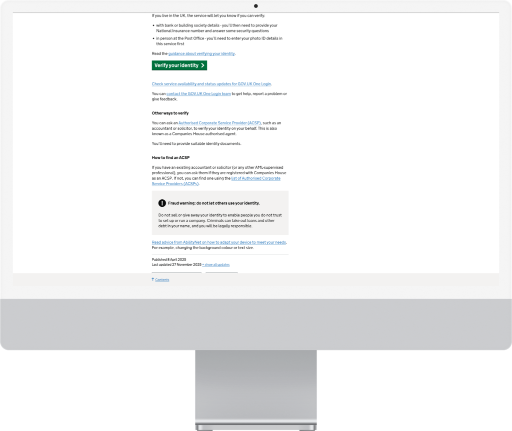 Este proceso es obligatorio para todos los directores y no depende del agente que haya creado la empresa. Realizarlo directamente es la forma más rápida y sencilla de cumplir con la normativa y evitar problemas con Companies House.